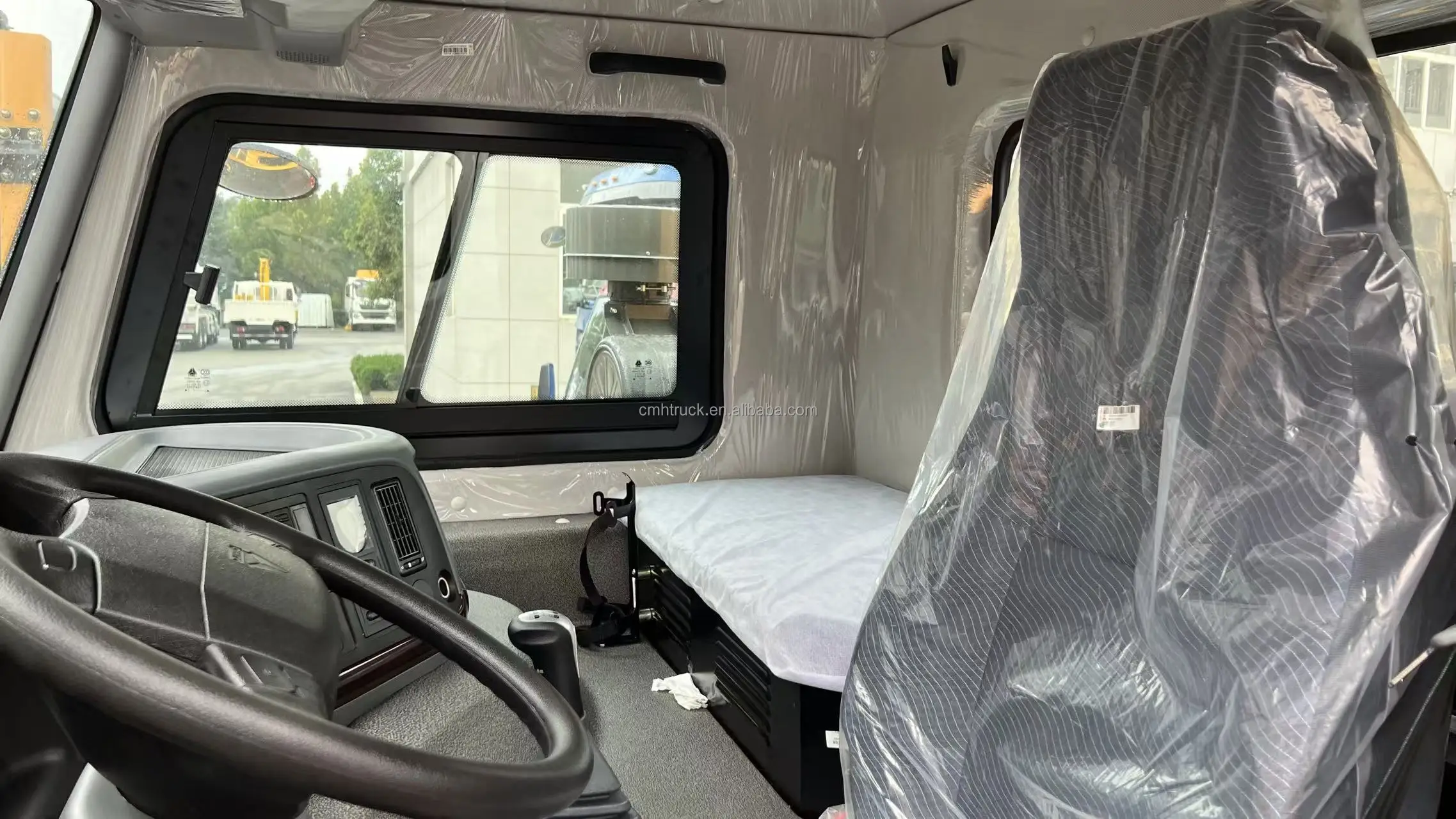 Cabina HW7D, con litera parcial y 01 asientos, sistema de limpiaparabrisas de doble brazo con tres velocidades, asiento del conductor amortiguado y ajustable, con sistema de calefacción y ventilación, visera exterior, cinturones de seguridad, volante ajustable, bocina neumática, aire acondicionado, con estabilizador transversal, con suspensión flotante de cuatro puntos de apoyo + amortiguador. |