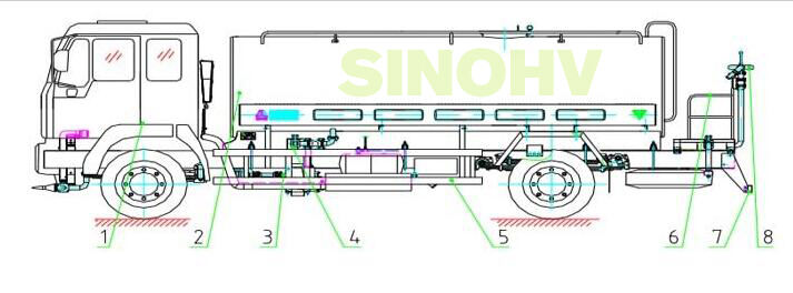 20000L( otra capacidad disponible como opción ) Bomba: bomba dedicada para camión regador de agua, 65QSB-50/110, caudal de salida 50m³/h .elevación de bomba 110 m. Chorro de agua a alta presión, alcance del arma 35 m Ámbito de riego: 14-18 m |