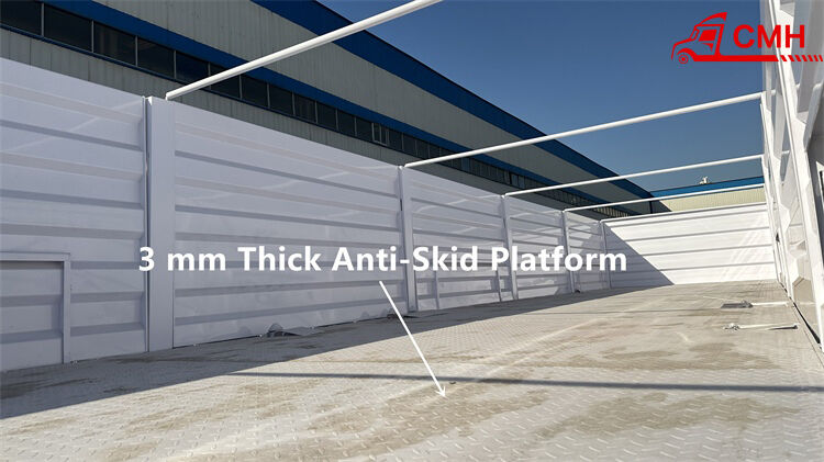 The main beam of tri axle trailer with board is made of Q345 high strength steel.Tri axle trailer with board adopts high density supports under the platform.The distance between every two support is only 50 cm.